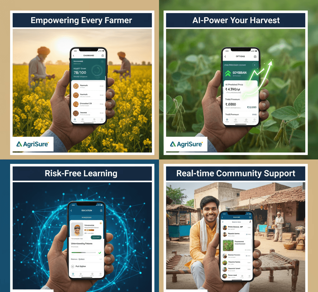 AgriSure enables farmers to hedge price risk with 60–80% effectiveness, lock minimum selling prices, and gain real-time market visibility, leading to more stable and predictable incomes. Buyers benefit from price certainty, secure supply through blockchain-verified contracts, and reduced intermediaries. Overall, the platform improves market transparency, reduces disputes, and demonstrates how AI-driven decision support can transform risk management in Indian agriculture.